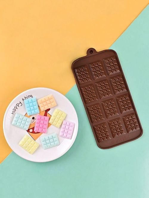 The image shows a silicone mini chocolate bar mold, which is a flexible, non-stick tray used for making small, break-apart chocolate bars at home.