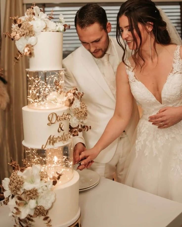 - It is a fillable cake stand, allowing for decoration with items like flowers, balloons, or confetti inside.