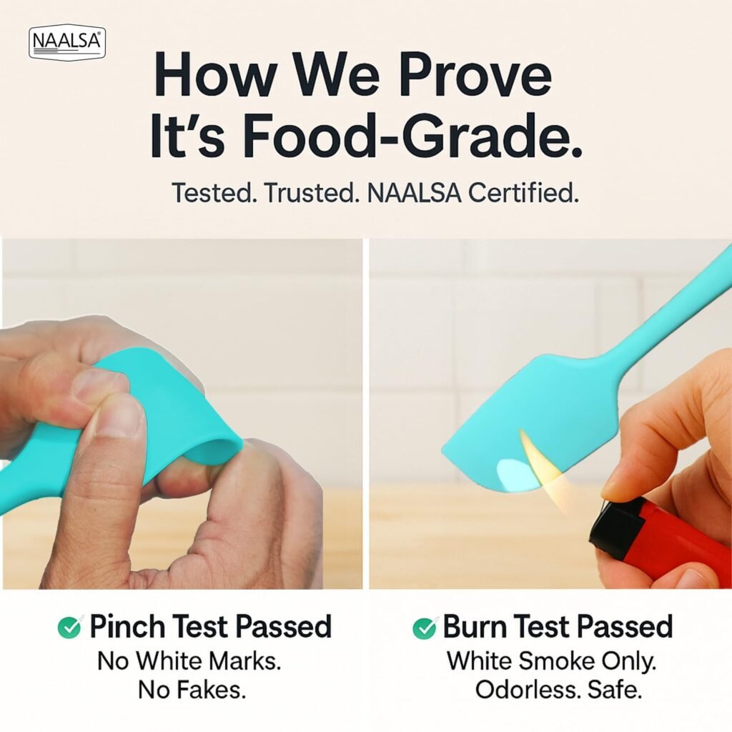 - Safe and Certified Quality : Having passed both the pinch test and burn test, this spatula guarantees safety in food handling. Made from non-toxic, BPA-free materials, it ensures peace of mind during meal preparation. Whether you’re using it as a silicone spatula for baking or flipping eggs, it’s safe for all ages. A must-