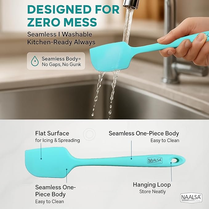 - Easy to Clean and Maintain : This spatula is dishwasher safe, saving time and effort after cooking or baking. Its seamless design prevents buildup of food or bacteria, ensuring hygiene. The stain-resistant silicone stays clean and odor-free even after heavy use. Whether it’s part of a set or used alone, this silicone spatula for cooking is easy to care for.