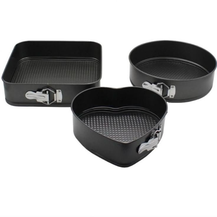 - The Springform Pan with non-stick coating has a detachable base so you can transport, decorate and serve your baked masterpiece with ease. Set of 3 springform pans includes 3 different shapes for versatility.
