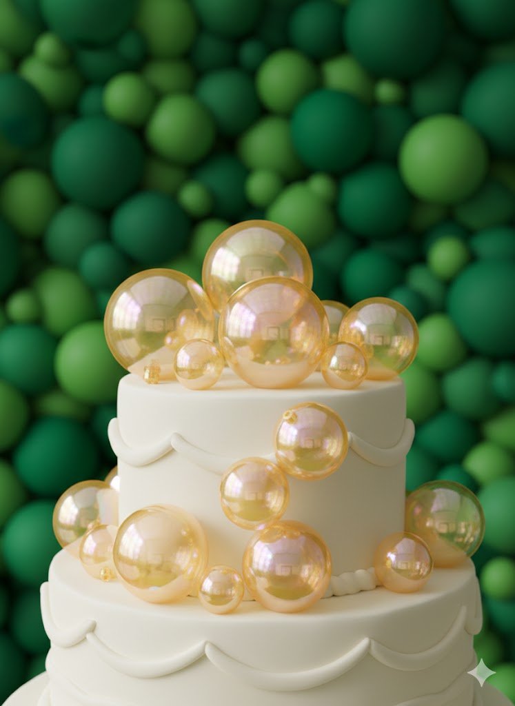 - Mini balloon-shaped toppers with pearl inserts for an elegant and whimsical touch