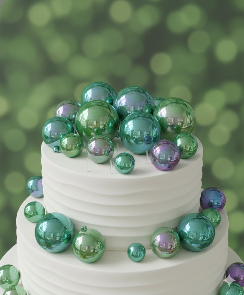 - Mini balloon-shaped toppers with pearl inserts for an elegant and whimsical touch